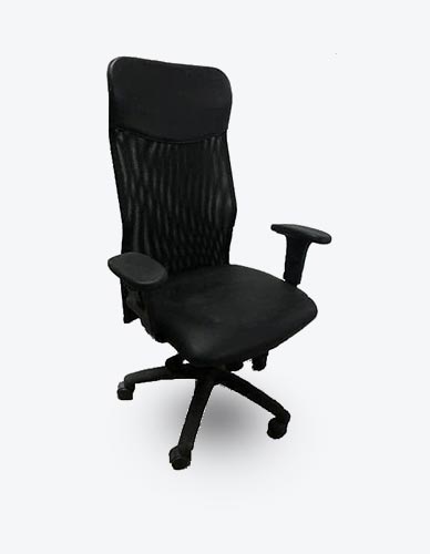 משענת גב גבוהה מרשת פלסטית עם אפשרות לשינוי מיקום תמיכת הגב.